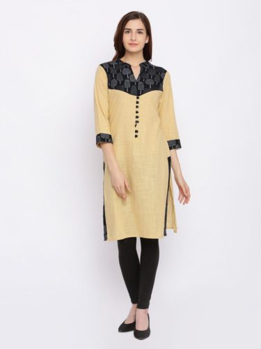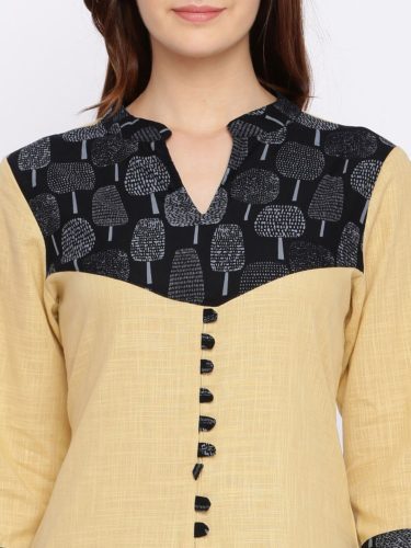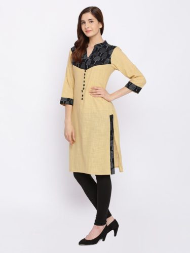This Black colour Straight kurti; tailored in regular fit is made up of Cotton fabric suitable for various seasons and occasions. This kurti is sold at the most reasonable price to enhance customer satisfaction. We assure you this 3/4 Sleeve Printed kurti with Mandarin Collar will surely fetch many compliments from your near and dear ones.