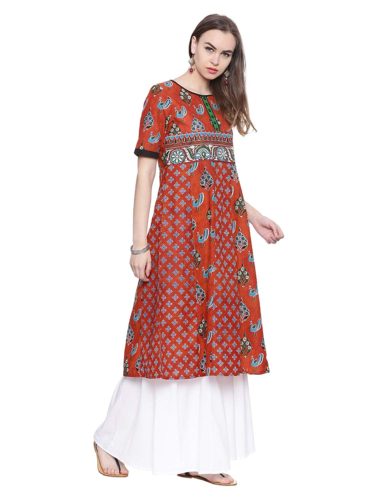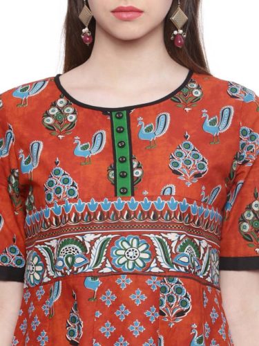 This Orange colour Anarkali kurti, tailored in regular fit is made up of Cotton fabric suitable for various seasons and occasions. This kurti is sold at the most reasonable price to enhance customer satisfaction. We assure you this Sleeve printed kurti with Round neck will surely fetch many compliments from your near and dear ones.