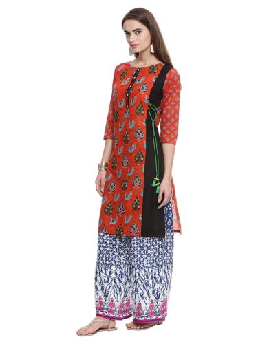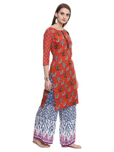 This Orange colour straight kurti, tailored in regular fit is made up of Cotton fabric suitable for various seasons and occasions. This kurti is sold at the most reasonable price to enhance customer satisfaction. We assure you this 3/4 Sleeve printed kurti with Round neck will surely fetch many compliments from your near and dear ones.
