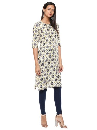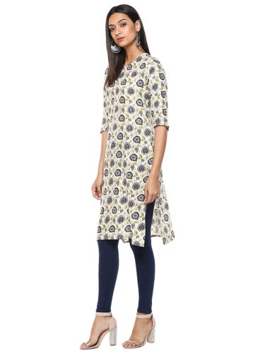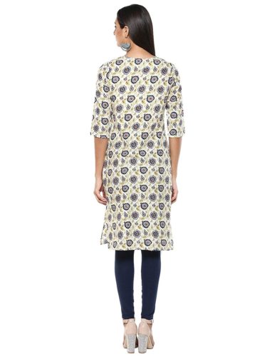 This White colour Straight kurti, tailored in regular fit is made up of Cotton fabric suitable for various seasons and occasions. This kurti is sold at the most reasonable price to enhance customer satisfaction. We assure you this 3/4 Sleeve printed kurti with Round neck will surely fetch many compliments from your near and dear ones.