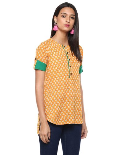 This Mustard colour Straight kurti, tailored in regular fit is made up of Cotton fabric suitable for various seasons and occasions. This kurti is sold at the most reasonable price to enhance customer satisfaction. We assure you this Half Sleeve printed kurti with Round neck will surely fetch many compliments from your near and dear ones.