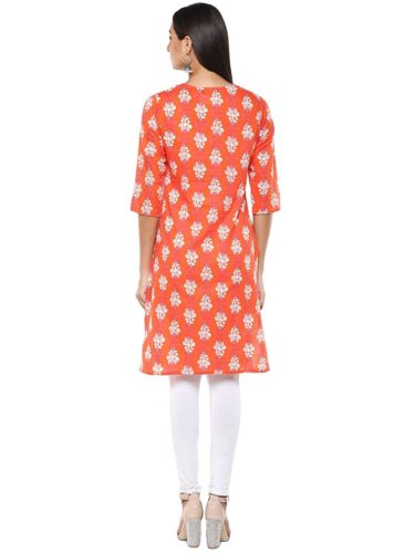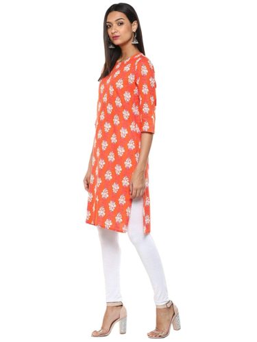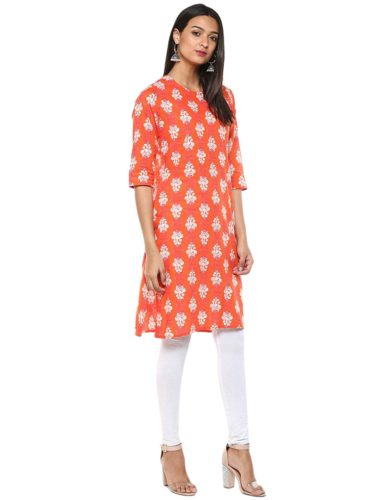 This Orange colour Straight kurti, tailored in regular fit is made up of Cotton fabric suitable for various seasons and occasions. This kurti is sold at the most reasonable price to enhance customer satisfaction. We assure you this 3/4 Sleeve printed kurti with Round neck will surely fetch many compliments from your near and dear ones.
