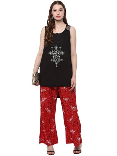 This Red colour straight Palazzo, tailored in regular fit is made up of Cotton fabric suitable for various seasons and occasions. This Palazzo is sold at the most reasonable price to enhance customer satisfaction. We assure you this printed Pallazo will surely fetch many compliments from your near and dear ones.