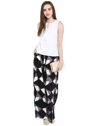 This Black colour Printed Palazzo, tailored in regular fit is made up of rayon suitable for various seasons and occasions. This palazzo is sold at the most reasonable price to enhance customer satisfaction. We assure you this Sleeveless printed kurti with Round neck will surely fetch many compliments from your near and dear ones.