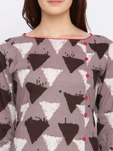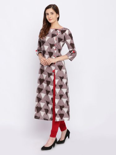 This Grey colour A-line kurti, tailored in regular fit is made up of Cotton fabric suitable for various seasons and occasions. This kurti is sold at the most reasonable price to enhance customer satisfaction. We assure you this 3/4 Sleeve printed kurti with Round neck will surely fetch many compliments from your near and dear ones.