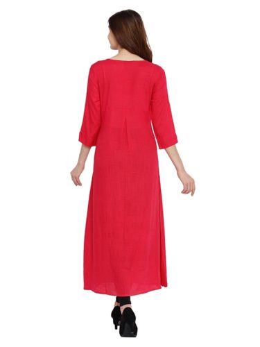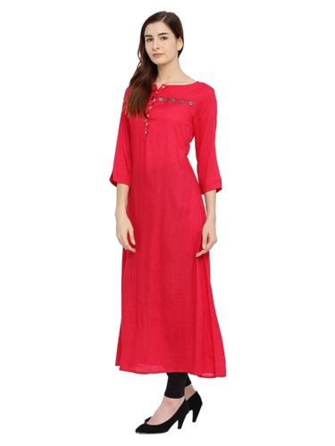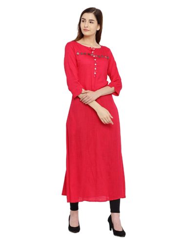 This Fuchsia colour A-Line kurti, tailored in regular fit is made up of Cotton fabric suitable for various seasons and occasions. This kurti is sold at the most reasonable price to enhance customer satisfaction. We assure you this 3/4 Sleeve Solid kurti with Round Neck will surely fetch many compliments from your near and dear ones.