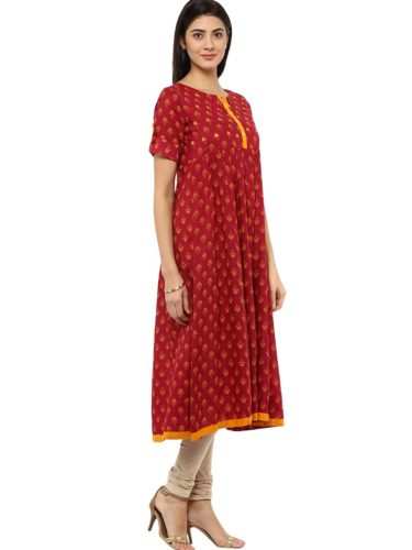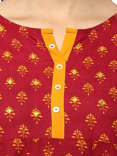 This Red colour Anarkali kurti, tailored in regular fit is made up of Cotton fabric suitable for various seasons and occasions. This kurti is sold at the most reasonable price to enhance customer satisfaction. We assure you this 3/4 Sleeve printed kurti with Round neck will surely fetch many compliments from your near and dear ones.