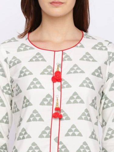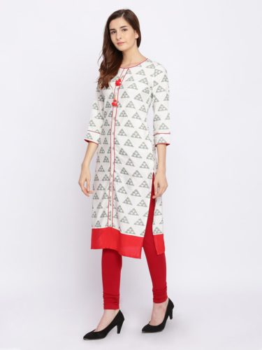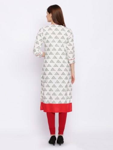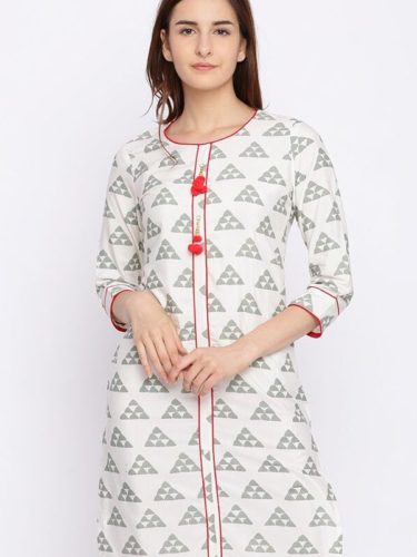This White colour Straight kurti; tailored in regular fit is made up of Cotton fabric suitable for various seasons and occasions. This kurti is sold at the most reasonable price to enhance customer satisfaction. We assure you this 3/4 Sleeve Printed kurti with Mandarin Collar will surely fetch many compliments from your near and dear ones.