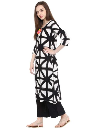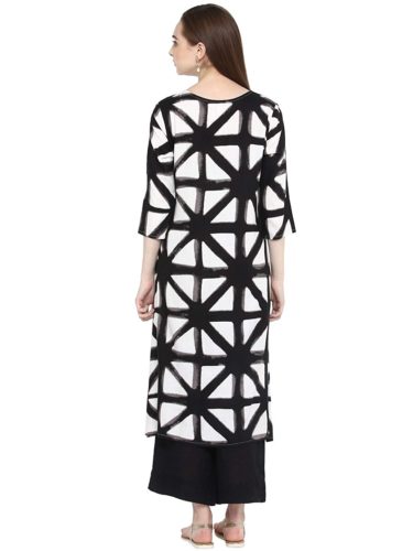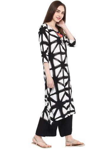 This Black colour A-Line kurti, tailored in regular fit is made up of Rayon fabric suitable for various seasons and occasions. This kurti is sold at the most reasonable price to enhance customer satisfaction. We assure you this 3/4 Sleeve printed kurti with Round neck will surely fetch many compliments from your near and dear ones.