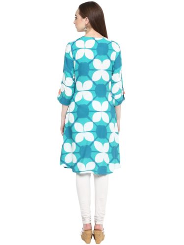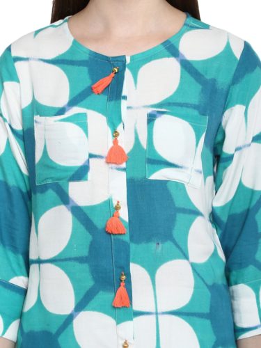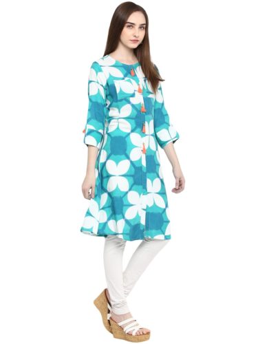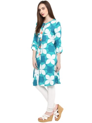 This Green colour A-Line kurti, tailored in regular fit is made up of Rayon fabric suitable for various seasons and occasions. This kurti is sold at the most reasonable price to enhance customer satisfaction. We assure you this 3/4 Sleeve printed kurti with Round neck will surely fetch many compliments from your near and dear ones.