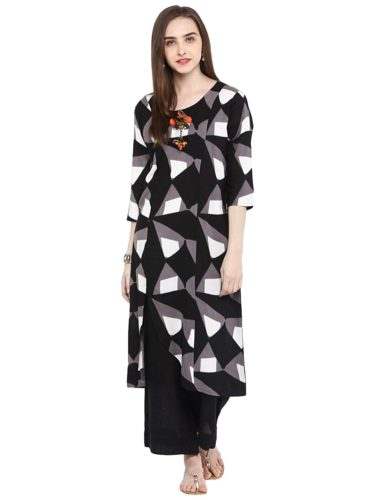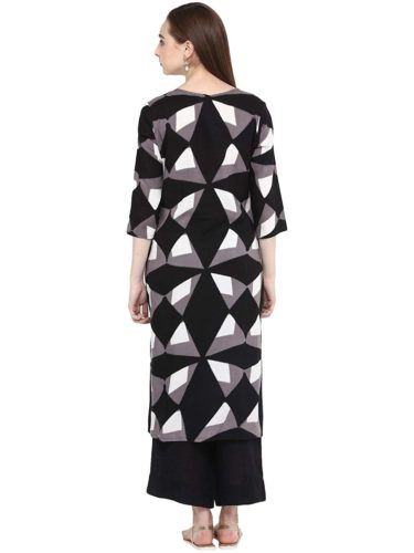 This Black colour straight kurti, tailored in regular fit is made up of Rayon fabric suitable for various seasons and occasions. This kurti is sold at the most reasonable price to enhance customer satisfaction. We assure you this 3/4 Sleeve printed kurti with Round neck will surely fetch many compliments from your near and dear ones.