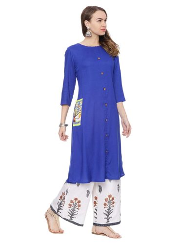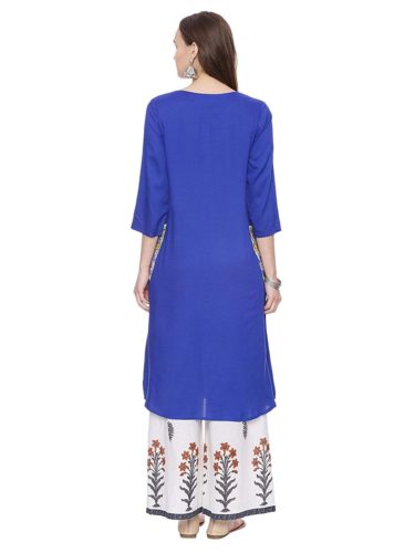 This Royal Blue colour straight kurti, tailored in regular fit is made up of Rayon fabric suitable for various seasons and occasions. This kurti is sold at the most reasonable price to enhance customer satisfaction. We assure you this 3/4 Sleeve printed kurti with Round neck will surely fetch many compliments from your near and dear ones.