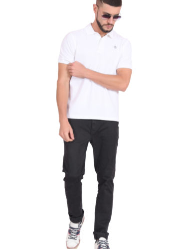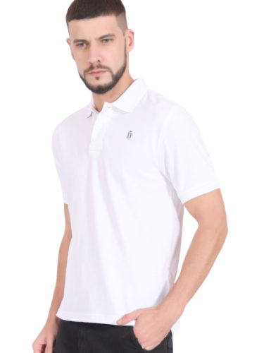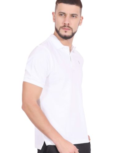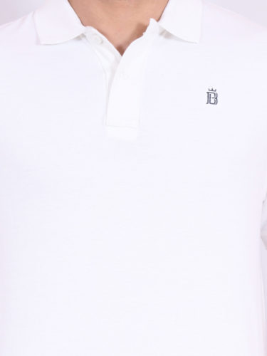 This plain White Polo T shirt for men has a polo collar, short sleeves, logo embroidered on the front left side. It has a two button placket style with no pockets and has a Regular comfort fit.